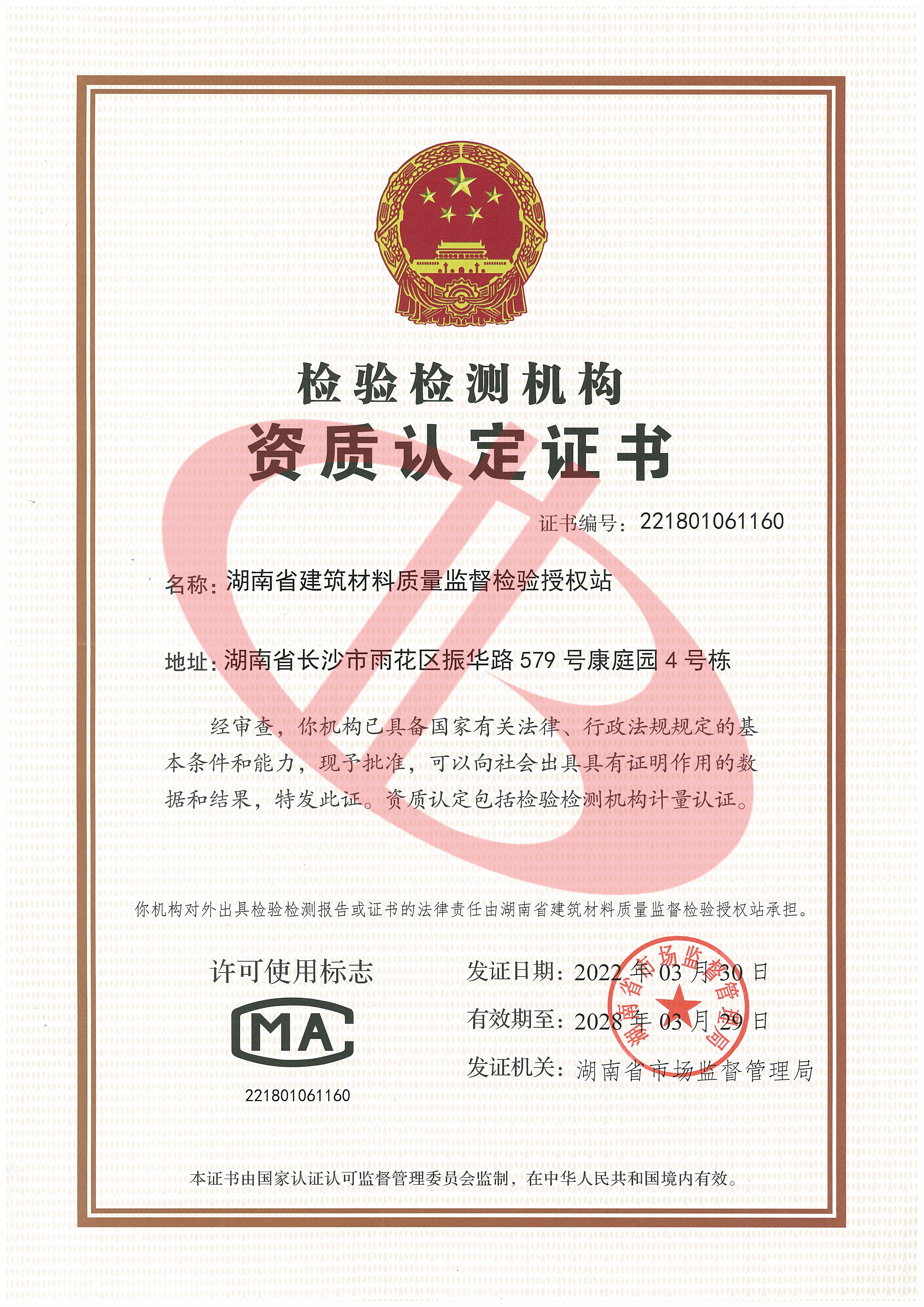 泰德檢驗檢測資質證書
